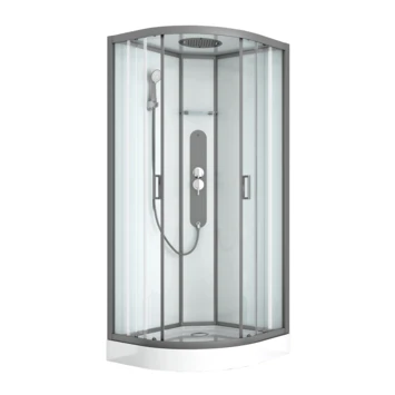 De Allibert douchecabine Uyuni 90×90 cm Kwartrond is zeer eenvoudig te installeren met zijn clip-systeem en zonder boren, in 1 uur montage en zonder silicone. Deze complete douchecabine bestaat uit een douchetub in versterkt ABS, wanden en douchedeuren met anti-kalkbehandeling en een hoogwaardige kraan. De “minimalistische rechte” structuur is vervaardigd uit verchroomd aluminium. De deuren zijn transparant, de achterwanden in wit veiligheidsglas. Het gelakt zwart bedieningspaneel zorgt voor een perfecte afstelling van de waterhoeveelheid. De keuze is uitgebreid: hydromassagestralen, een handdouche met 3 functies, een zwart gelakt stalen douchekop van 25 x 25 cm geïntegreerd in het witte glazen dak.