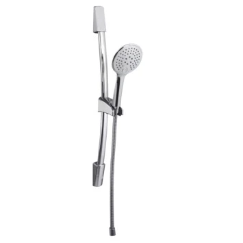 De doucheset Diego betsaat uit een handdouche met een diameter van 11 cm, doucheslang en -stang met een verstelbare handdouchehouder en muursteunen. De houder van de handdouche kun je eenvoudig in hoogte verstellen. Bij de duurzame handdouche wordt een waterbesparende ring geleverd die je naar keuze kunt plaatsen tussen de douchekop en -slang. Met de ring bespaar je tot 40% water. Kalk hecht zich moeilijk vast aan de siliconen sproeikopjes en kan gemakkelijk met de vingers afgeveegd worden. De doucheslangen zijn voorzien van universele 1/2″ aansluiting en passen op iedere douchekraan. Je draait deze slangen eenvoudig met de hand op de uitloop van de kraan. Op de douchesets, -koppen en -slangen van Atlantic heb je 2 jaar garantie.
