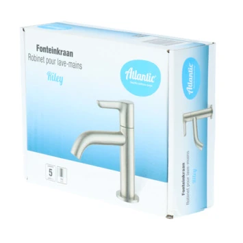 De Atlantic fonteinkraan Riley met hendel RVS bestaat uit een RVS fonteinkraan van 12,2 cm hoog, bevestigingsmateriaal en montagehandleiding. De Riley fonteinkraan heeft een handige eenhendelbediening, waarmee je eenvoudig de kraan aan zet. De kraan heeft een diepte van slechts 10,2 cm en is daarmee uitermate geschikt voor gebruik in het toilet. De geborstelde afwerking geeft de tijdloos vormgegeven kraan een wat stoerdere uitstraling. Gebruik alleen water en een zachte doek om de kraan schoon te maken. Gebruik geen schurend, bijtend, azijnhoudend of agressief schoonmaakmiddel. Besluit je deze kraan te kopen? Dan heb je 5 jaar garantie.