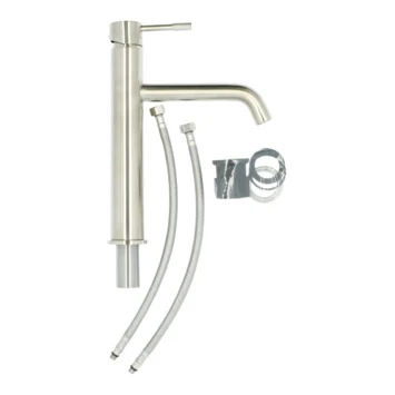 De Atlantic keukenkraan Kaden met hendel RVS bestaat uit een keukenkraan met rechte hoge uitloop, 2 flexibele aansluitslangen, bevestigingsmateriaal en montagehandleiding. De Kaden keukenkraan heeft een draaibare uitloop van 360° waarmee je eenvoudig plaats maakt bij je gootsteen. Ook de hoge uitloop op 16 cm geeft ruimte. Handig als je bijvoorbeeld een grote pan of emmer wil vullen. Met de eenhendelbediening draai je met 1 hand de kraan naar de gewenste temperatuur. Draaien doe je soepel en nauwkeurig door de keramische schijven, die bovendien weinig onderhoud vergen. Je bespaart water door de ingebouwde eco-klik. De ingebouwde weerstand in de hendel zorgt ervoor dat je de kraan niet direct op de hoogste straalstand zet. Daarmee bespaar je dus op je waterverbruik. Wens je toch een hardere straal, dan zet je de hendel wat verder open. Aan de anti-kalk perlator hecht kalk zich moeilijk vast en veeg je er met de hand af. Deze rechte keukenkraan met hoge uitloop heeft een matte, geborstelde RVS afwerking en past met de tijdloze vormgeving in ieder keukeninterieur. Gebruik alleen water en een zachte doek om de kraan schoon te maken. Gebruik geen schurend, bijtend, azijnhoudend of agressief schoonmaakmiddel. Op de kraan heb je 5 jaar garantie.