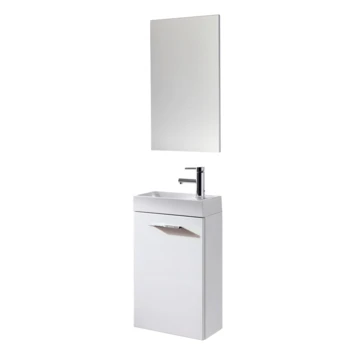 Een modern toilet kan niet zonder het strakke, maar elegante Esme handenwassermeubel. Het meubel is gemaakt uit hout en keramiek in de kleur wit. Deze witte set bestaat uit een hangende wasbak van 40 cm met 1 kastje met een draaideur en een rechthoekige spiegel. Inclusief bevestigingsmateriaal; exclusief kraan, accessoires, sifon en afvoerplug.