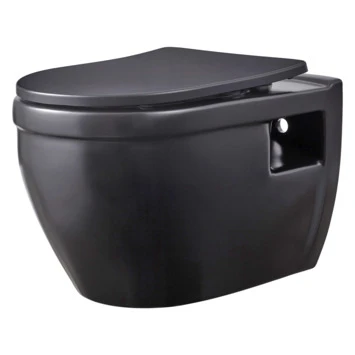De Atlantic Tyler ophangwc randloos zwart past met zijn zwarte kleur perfect in de meest trendy badkamers. De Atlantic Tyler ophangwc heeft een universele muuraansluiting. Normale toiletten hebben een spoelrand waar zich vuil achter ophoopt. Deze wc heeft geen spoelrand en is dus enorm eenvoudig in onderhoud. Daarnaast heeft deze toiletpot een softclose wc bril die ervoor zorgt dat je de bril nooit te hard laat vallen. De muuraansluiting is geschikt voor elk inbouwreservoir. Dus ben je op zoek naar een eenvoudig te reinigen wandcloset met een wc bril die zorgt dat je niemand wakker maakt wanneer je ’s nachts de bril laat vallen? Dan is de het Atlantic Tyler wandcloset randloos zwart wat je zoekt.