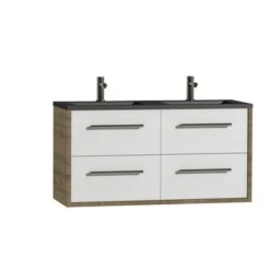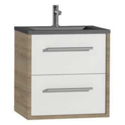 Tiger Badkamermeubel Boston 60 Cm Chalet Eik Met Polybeton Wastafel Wit En Ronde Grepen RVS