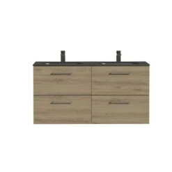 Tiger Reverse Meubelset 80 Cm Met 2 Lades Chalet Eik / Mat Zwart Inclusief Quadro Wastafel Mat Zwart