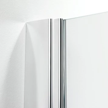 Het vaste deel heeft een stabilisatiesteun die zowel op de muur als op het glas scharniert. Bovendien is het op maat te zagen, wat voor extra installatiegemak zorgt. Het draaibare glaspaneel scharniert naar binnen én naar buiten toe, wat voor schoonmaakgemak zorgt.