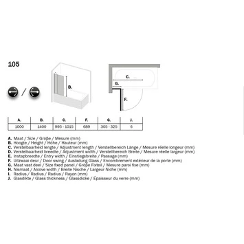Deze badwand heeft een verstelbaarheid van 99,5 tot en met 101,5 cm.