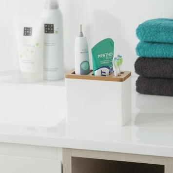 De Sealskin Tandenborstelhouder Grace Wit is gemaakt uit steen. De afwerking is een combinatie van wit steen en bamboe accenten. Ideaal om een vakantiesfeer te creëren in je badkamer. De tandenborstelhouder is eenvoudig te reinigen met een vochtige doek. Natuurlijk kan je deze houder ook gebruiken om je scheermesjes of oogpotloden in op te bergen. Vervolledig deze Grace serie van Sealskin met de bijhorende zeepdispenser, toiletborstel met houder, beker en spiegeldoosje.