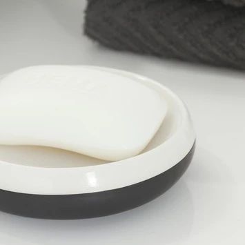 De complete Sphere serie in twee contrasterende kleuren, zwart en wit, kleedt je badkamer in één keer aan. Dit Sealskin Zeepbakje Sphere Zwart is handig voor je zeep, maar ook erg geschikt om je sierraden of horloge in te leggen. Maak de zeepschaal regelmatig schoon met een vochtig doekje.