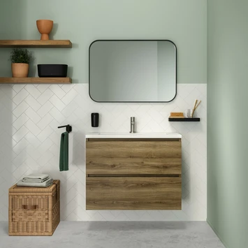 Tiger Badkamermeubel Boston 60 Cm Chalet Eik Met Polybeton Wastafel Wit En Ronde Grepen Chroom