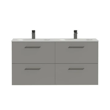 Dit badkamermeubel is onderdeel van de Tiger Studio serie. Dit is een serie met enorm veel varianten met een kleine aanpassing. Denk daarbij aan afmetingen, kleur, vorm, etc. Deze variant heeft een mat-grijze onderkast met 4 lades, met vierkante grepen en een softclose ladesysteem. Dat wil zeggen dat de lades altijd zachtjes sluiten. Dit voorkomt schade aan het houtwerk wanneer je per ongeluk de lades te hard dicht doet. De lades bieden voldoende ruimte om handdoeken en andere sanitaire spullen in op te bergen. De onderkast, met een breedte van 120 cm, heeft 2 mat witte wastafels van polybeton. Hoewel deze op de afbeelding misschien met kraan te zien zijn, wordt dit badmeubel exclusief kraan en sifon verkocht. Gelukkig heeft GAMMA ook een breed assortiment met kranen. Dankzij de duidelijke handleiding en meegeleverd bevestigingsmateriaal kun je eenvoudig zelf de montage uitvoeren. Tot slot zit er 3 jaar garantie op alle badmeubelen binnen de Tiger Studio serie. Mocht dit Tiger Badkamermeubel Studio 120 cm Mat Grijs met Dubbele Polybeton Wastafel Mat Wit en Vierkante Grepen het net niet helemaal zijn, kijk dan vooral nog even verder in de GAMMA webshop. Er is vast en zeker een passende maat en kleurencombinatie te vinden!