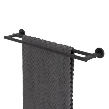 Het dubbele handdoekrek uit de Tiger Noon serie is uitgevoerd in de kleur mat zwart en biedt plaats aan twee handdoeken. De Noon serie bevat tevens een groot aantal aanvullende accessoires voor de badkamer en het toilet in dezelfde stijl.