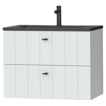 Tiger Maryport Badkamermeubelset 80 Cm Mat Wit Met Matzwarte Polybeton Wastafel En Matzwarte Grepen
