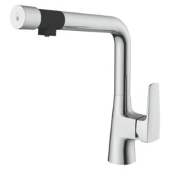 Met een Van Marcke Keukenkraan Spirit met Hendel en Gefilterd Water Chroom heb je altijd vers gefilterd water ter beschikking. Deze keukenkraan heeft namelijk een aparte uitloop voor gefilterd water. De mobiele bek van deze kraan zorgt voor extra gebruikscomfort en de zwarte tinten geven de spoeltafel een strakke, moderne look. De kraan heeft komt met een handleiding en montageset. Je kunt deze kraan dus zelf monteren. Ook zit er 5 jaar garantie bij waardoor je zeker weet dat je kwaliteit in huis haalt.